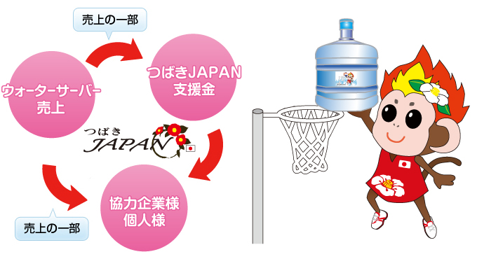 群馬つばきJAPANでは、当チームオリジナルデザインのウォーターサーバーの設置を進めております。このウォーターサーバーの売上げの一部をチームの強化費・運営費として寄贈頂きます。